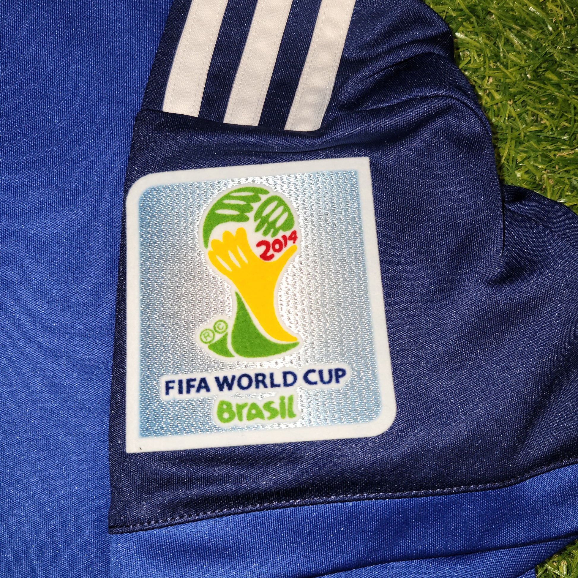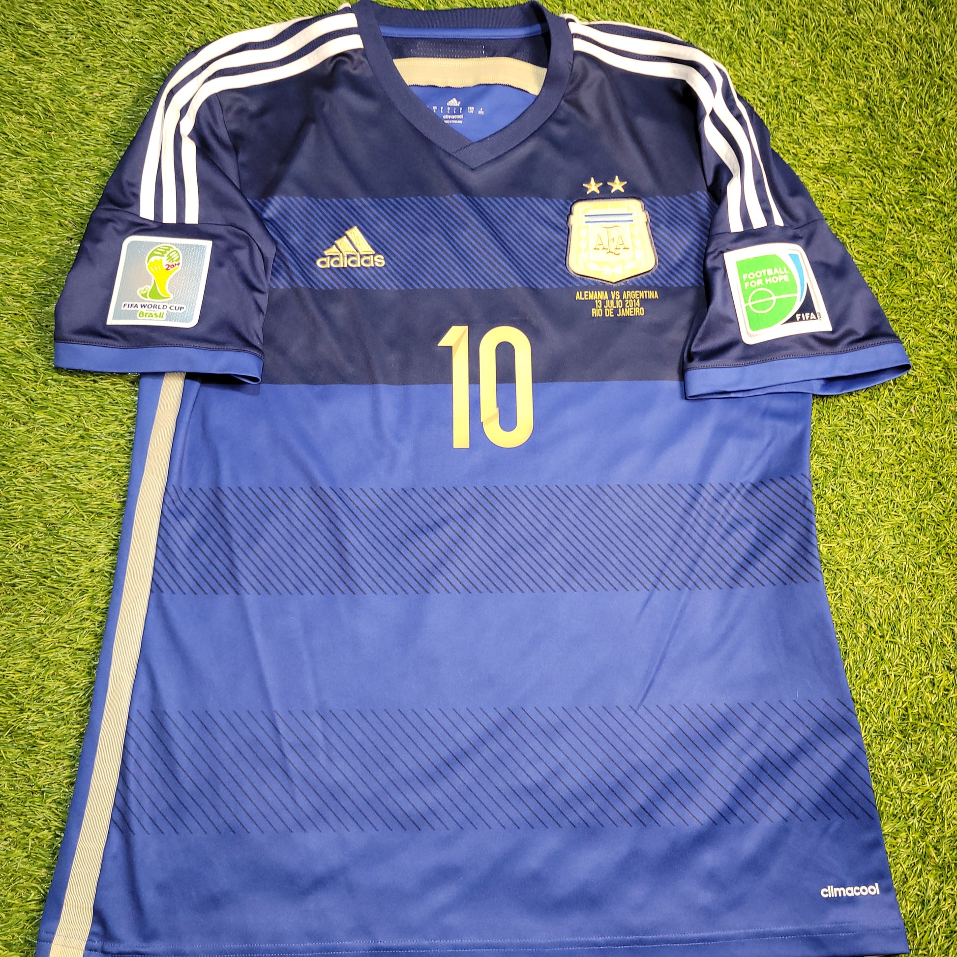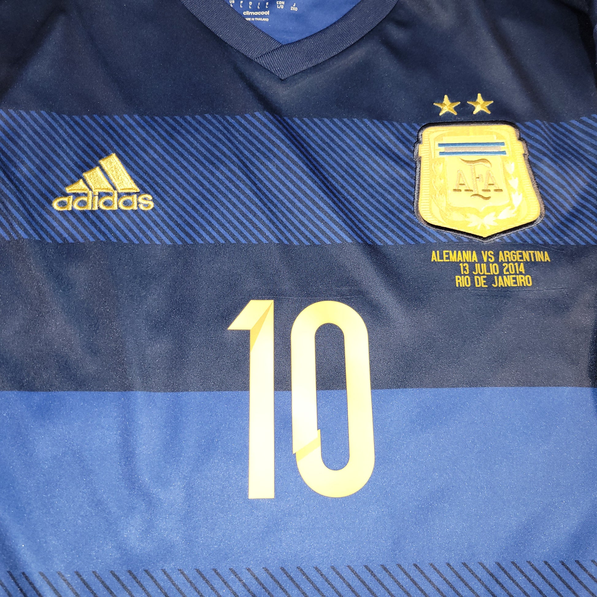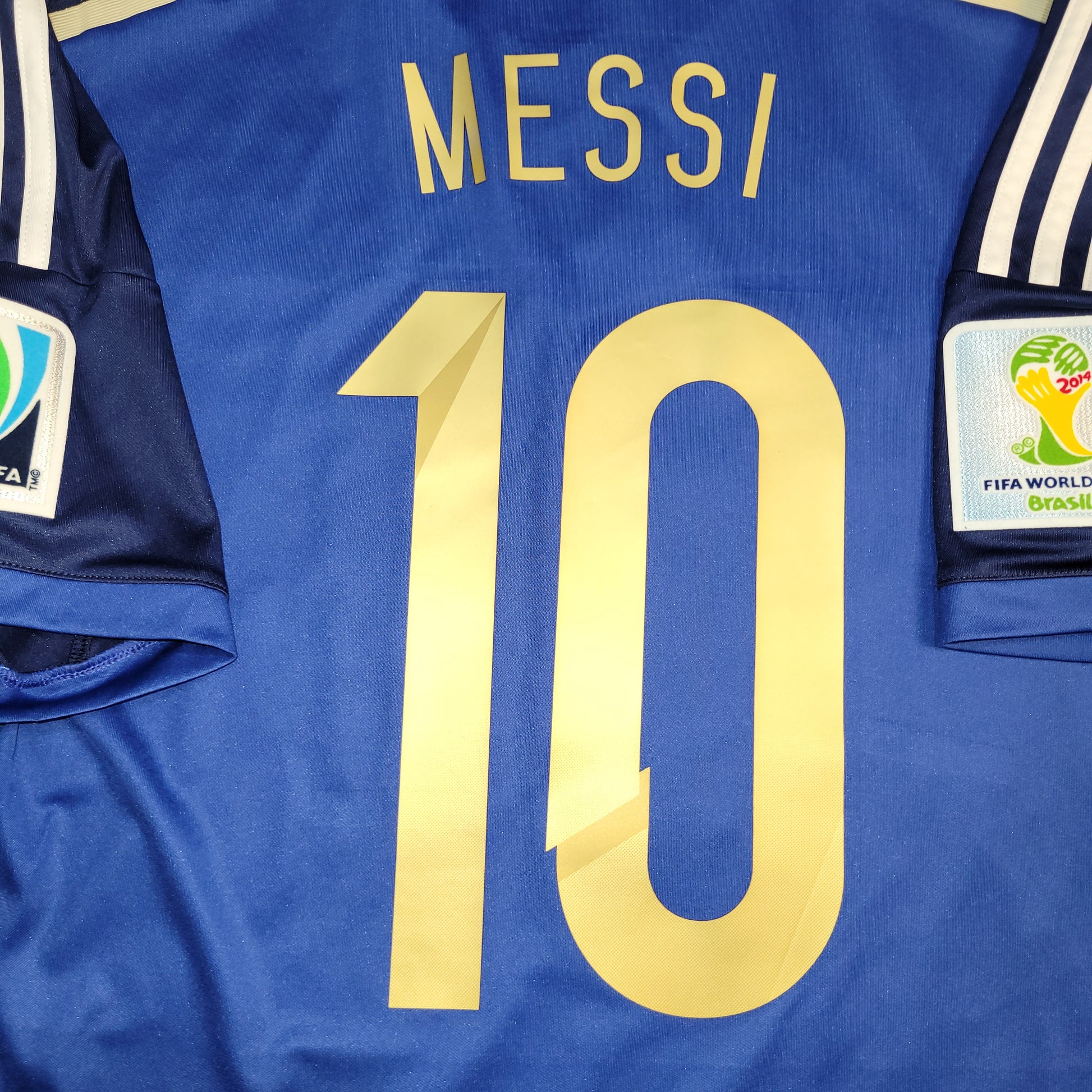 Official Lionel Messi Argentina Away Jersey from the 2014 World Cup Final Match vs Germany.